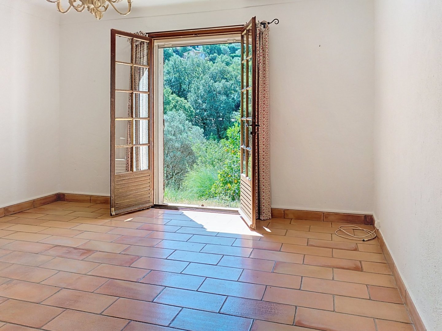 NEYRAT IMMOBILIER A Fayence, CHARMANTE VILLA, proche du village avec une belle vue dégagée et environ 3300m² de terrain composée en rez-de-chaussée d'une entrée, une cuisine équipée semi ouverte, un grand salon / salle à manger donnant sur une agréable terrasse, deux chambres, une salle de douche avec WC rénovée.