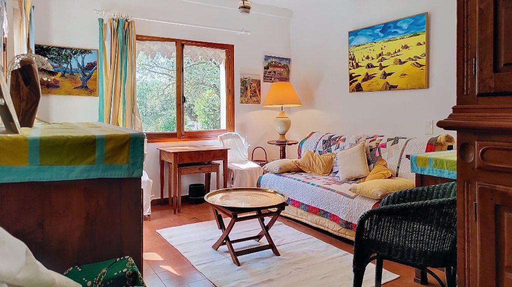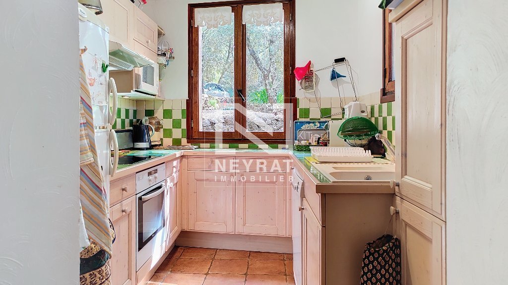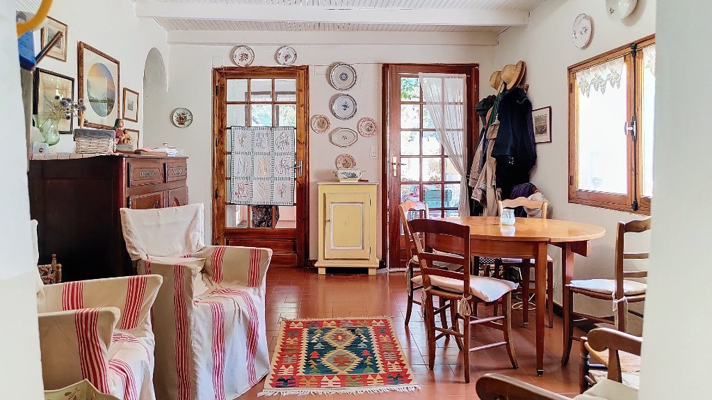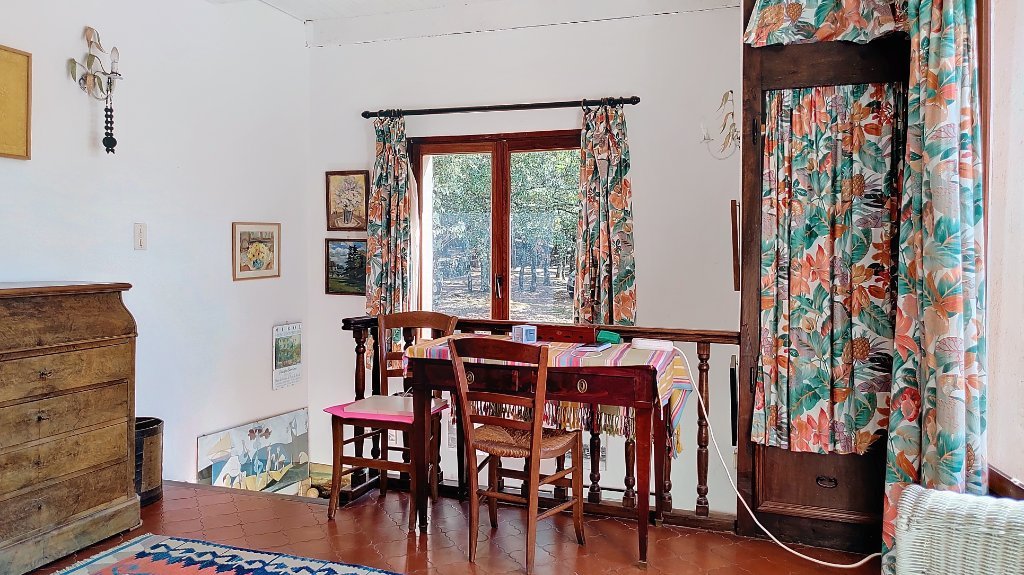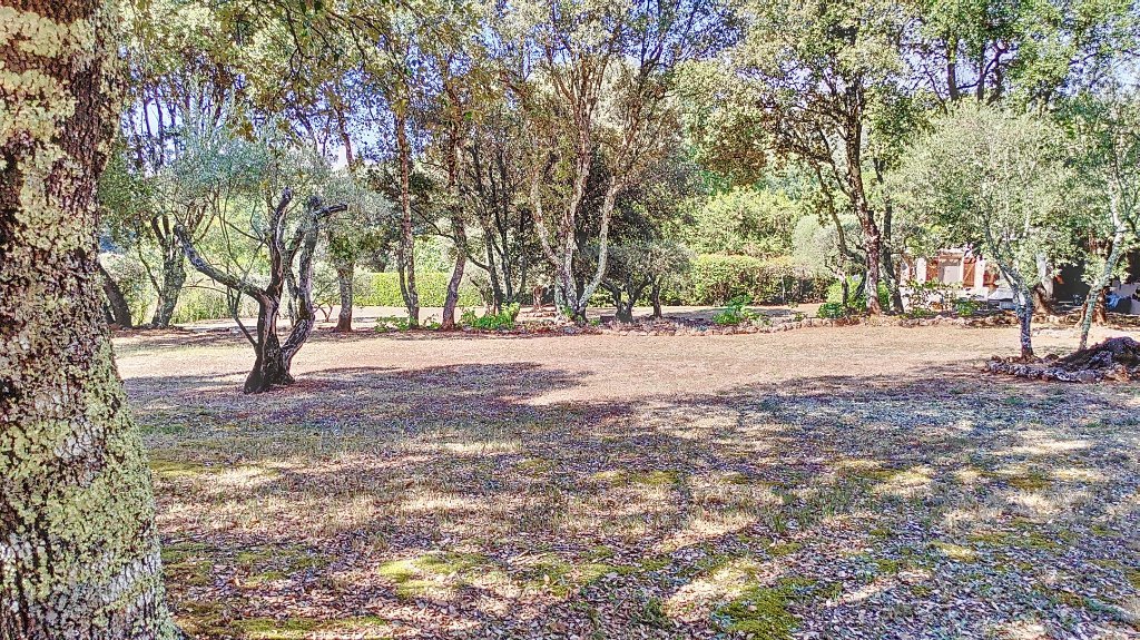 L'extérieur est tout aussi séduisant avec un vaste terrain plat arboré d'oliviers et de chênes, une piscine, un chalet en bois de 22 m², et un abri pour le bois.