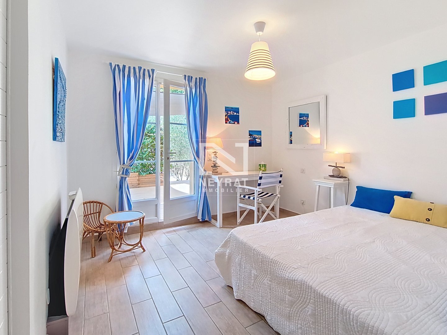 À l'étage, vous découvrirez trois chambres dont une suite parentale avec salle de bains double vasque, WC, dressing et belle terrasse tropézienne, une salle de bains supplémentaire et une seconde terrasse de 32 m².
