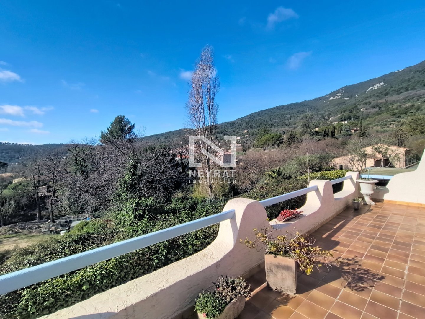 En annexe : un abri de jardin, un poulailler, et une très belle terrasse offrant une superbe vue sur le village se Seillans.