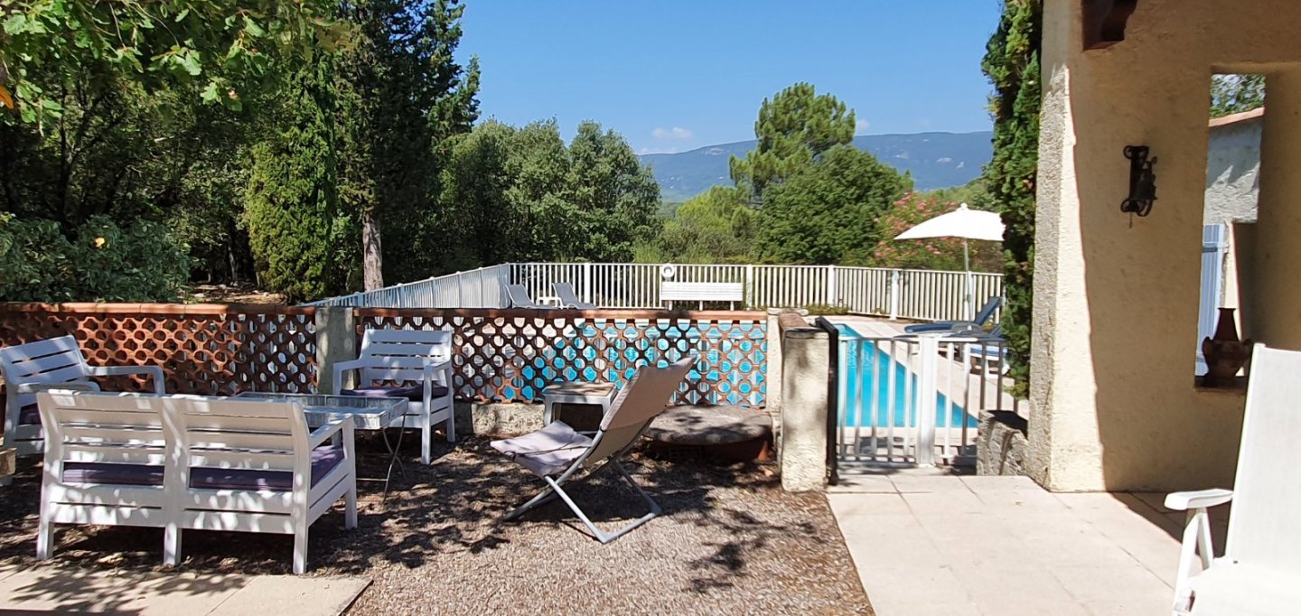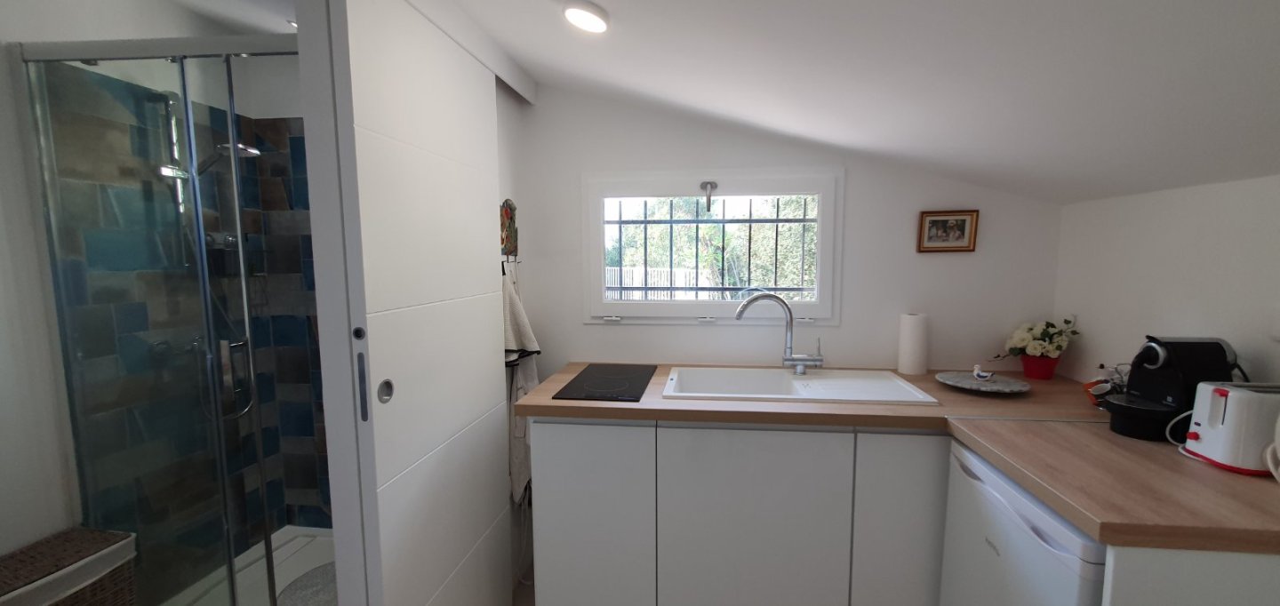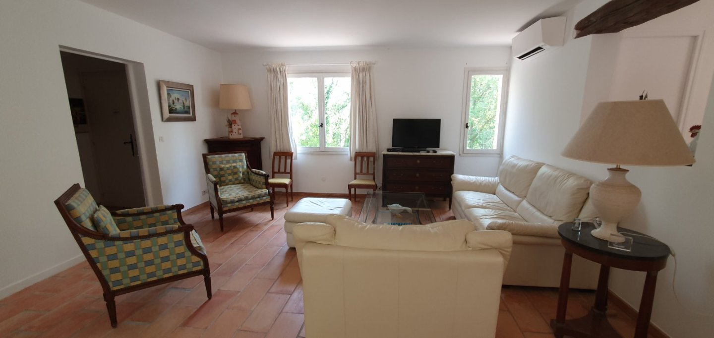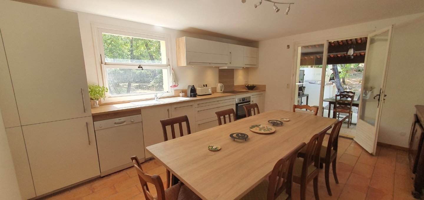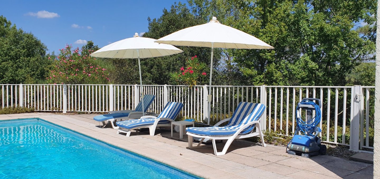 De plain pied : très belle cuisine récente équipée, un salon, une grande chambre en suite, le tout donnant sur la piscine et de grandes terrasses conviviales.