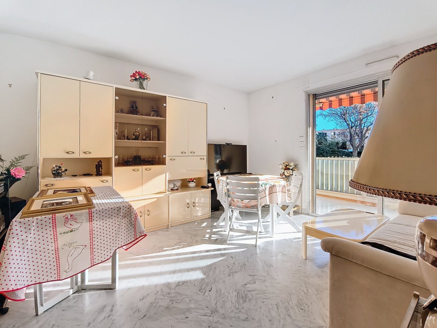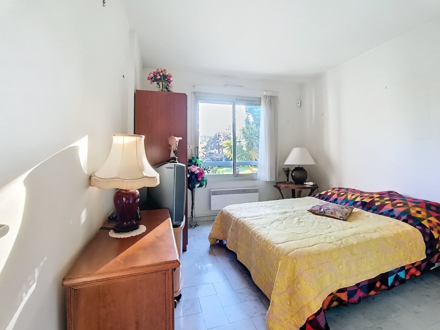 A 10 mns à pied de la mer, avec commerces à proximité, dans une résidence sécurisée, T2 au rez-de chaussée légèrement surélevé, sur espaces verts , résidence av ascenseur, entré, séjour, sol marbre, donnant sur terrasse de 6.92m² exposée au sud, et sans vis-à-vis, cuisine carrelée, aménagée et équipée, sur loggia fermée de 1,98m², salle de bain avec coin toilette, chambre avec grand placard, Grenier de 7,25 m², emplacement parking extérieur et Garage fermé en sous-sol dans une résidence voisine à 300m. Idéal premier achat, résidence secondaire, ou locatif. Faibles charges. Prévoir travaux de rafraîchissement