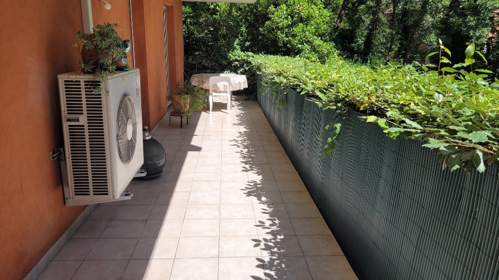 VENCE logement avec climatisation réversible en très bon état comprenant : entrée, séjour, cuisine, wc avec lave-mains, 2 chambres avec placard, grande terrasse. Deux parkings sous-sol.