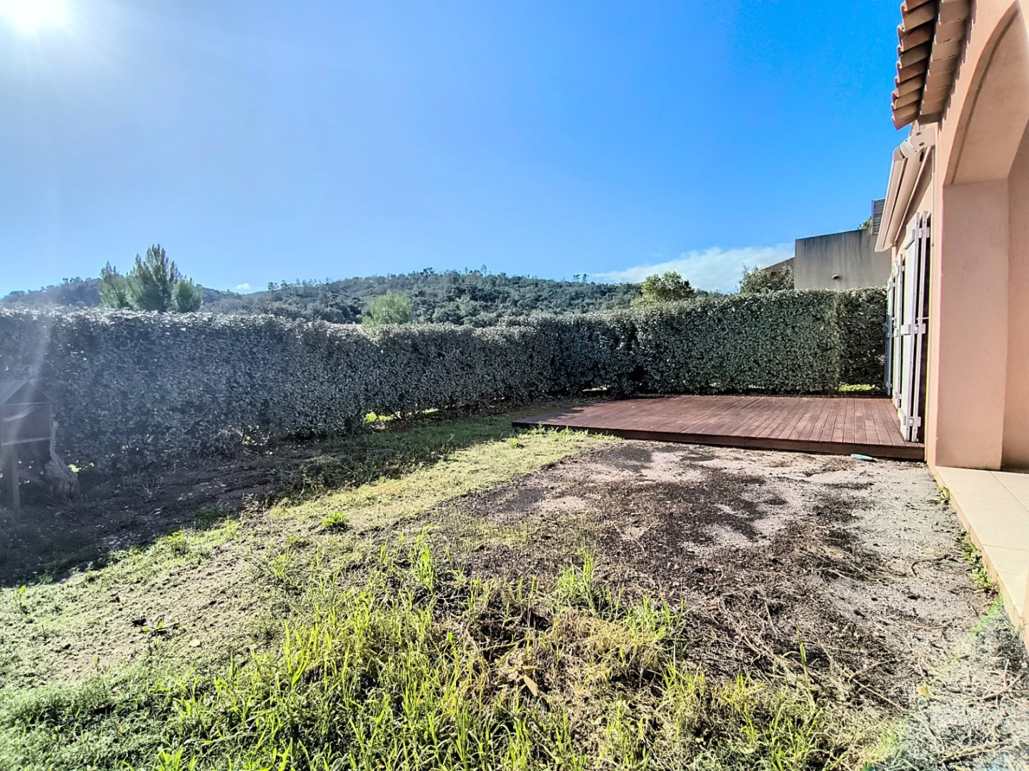 Roquebrune sur Argens, domaine de sainte Candie, au calme et sans vis à vis, et à 15 minutes de la mer, un appartement comprenant vaste salon séjour (ouvert sur terrasse et jardin) avec cuisine ouverte meublée équipée, coin nuit comprenant couloir distribuant 2 chambres ( accès sur loggia et jardin) , une salle de bain , wc séparé, un garage .