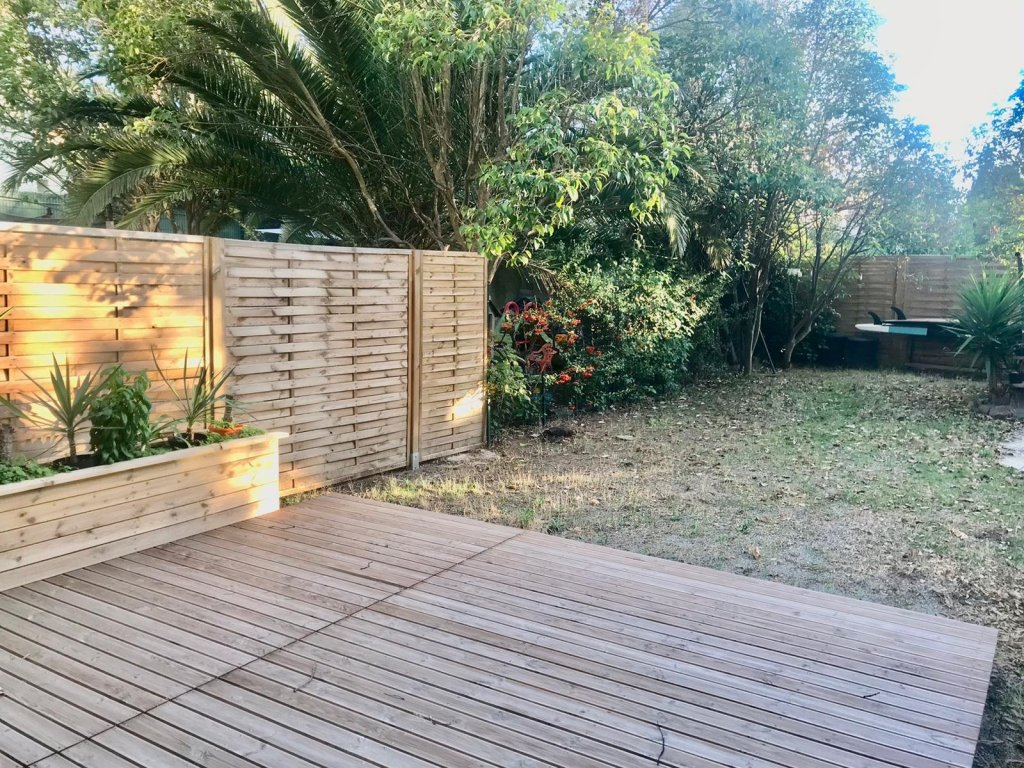 Dans copropriété de 2 lots seulement, (rez de chaussée et étage), rez de chaussée avec 219 M2 de jardin à jouissance exclusive et privative, entrée directe dans séjour avec cuisine aménagée et équipée ouverte, deux chambres avec placards, salle de douche avec espace buanderie attenant, WC séparé,