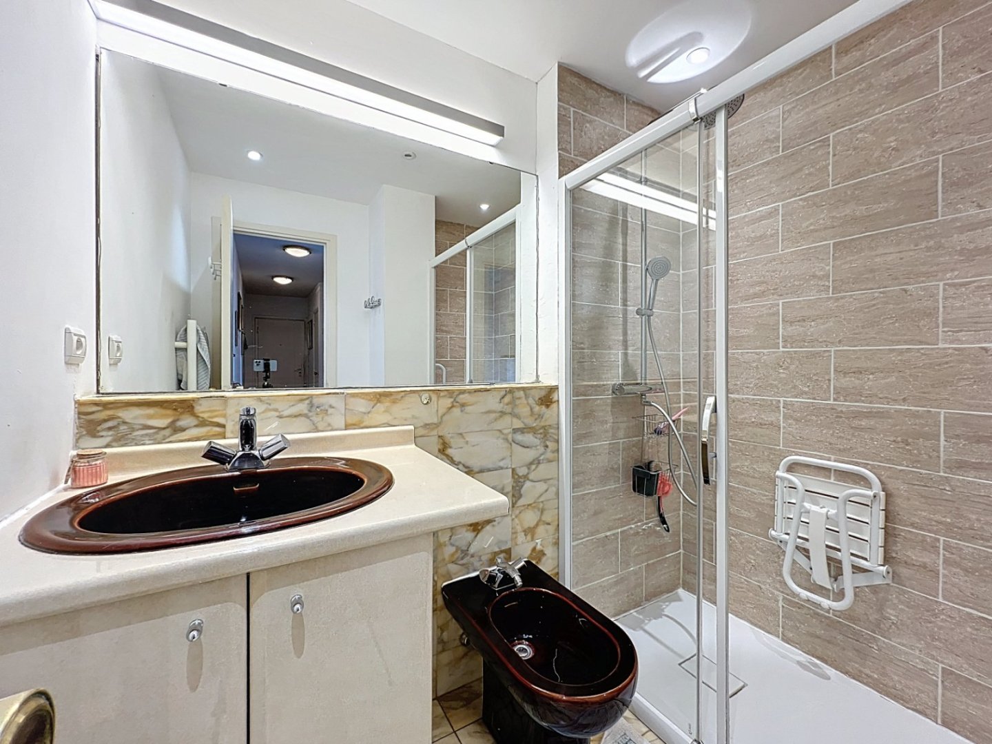 L'appartement dispose également de deux chambres confortables, chacune équipée de placards intégrés pour un maximum de rangement. La salle d'eau moderne complète cet espace de vie.