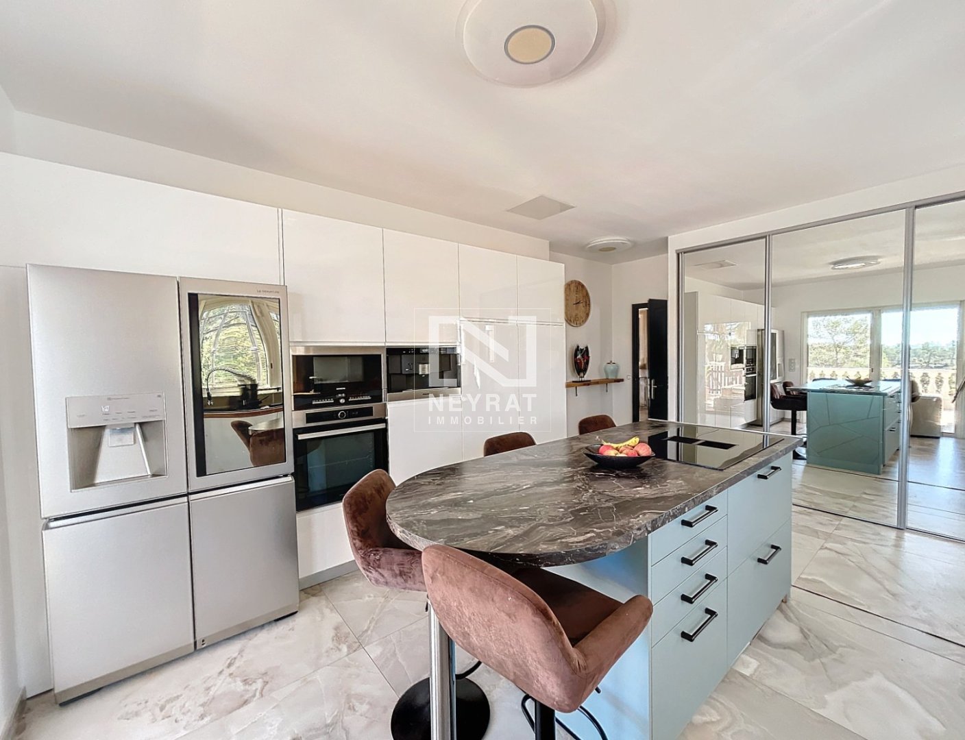 Belle propriété dans un domaine très prisée, nous vous présentons une belle villa de 250 m² aux volumes généreux et prestations haut de gamme, édifiée sur un grand terrain de 5500m², sa position dominante permet une vue dégagée. De plain pied on est tout de suite séduit par un belle entrée ouvrant sur un séjour de 90 m² avec cheminée, une grande cuisine de 25m² équipée, ainsi qu'une master avec dressing, et un bureau, l'ensemble donnant sur une terrasse d'environ 150m². A l'étage 3 chambres avec chacune sa salle de bains. WC. Elle est agrémentée d'un studio indépendant. Garage de 50 m², une piscine à débordement au sel et chauffée avec son pool house. Calme absolu.