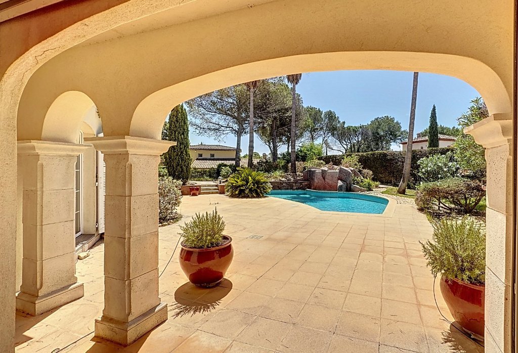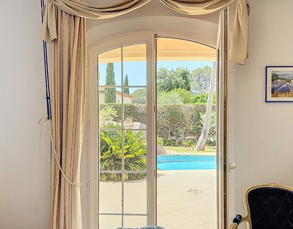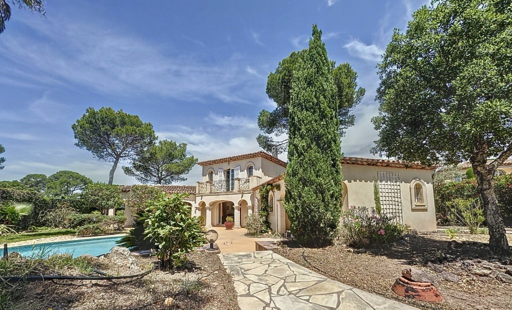 jouissant d'un emplacement exceptionnel au golf de Saint Raphael, au cœur d'un prestigieux petit domaine fermé, cette villa haut de gamme, bénéficie d'un environnement unique et d'un accès proche au commerces, au calme absolu.