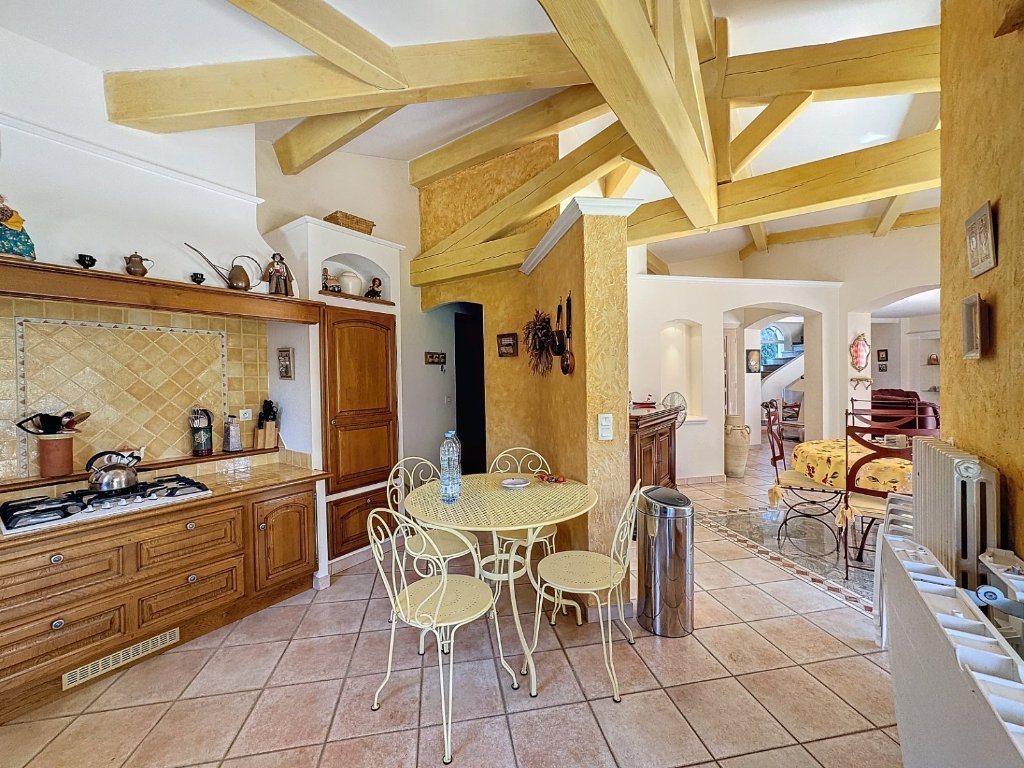 D'une surface d'environ 160 m² elle est principalement de plain-pied: grande entrée, double séjour, cuisine équipée, deux chambres avec salles d'eau. A l'étage, une chambre en suite avec terrasse ainsi qu'un espace mansardé. Grand garage double accompagné d'une grande lingerie.