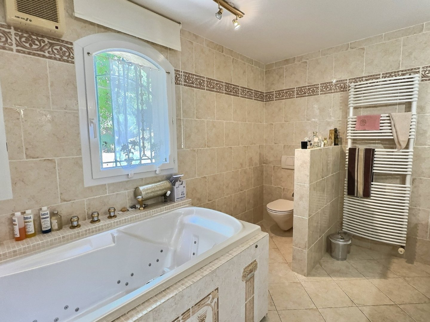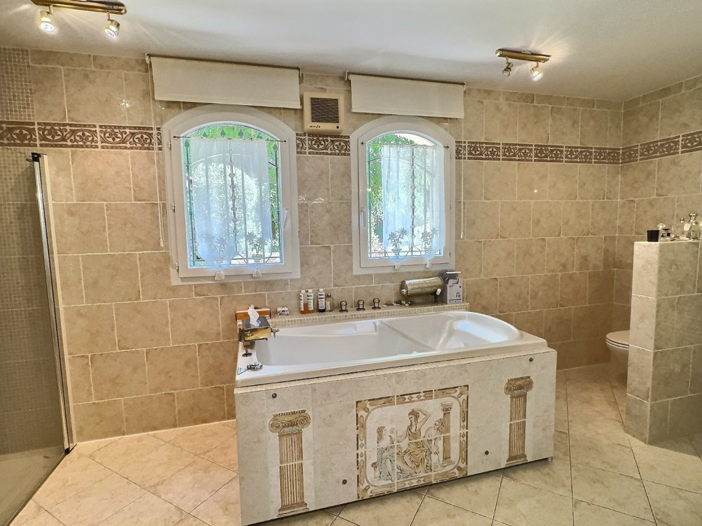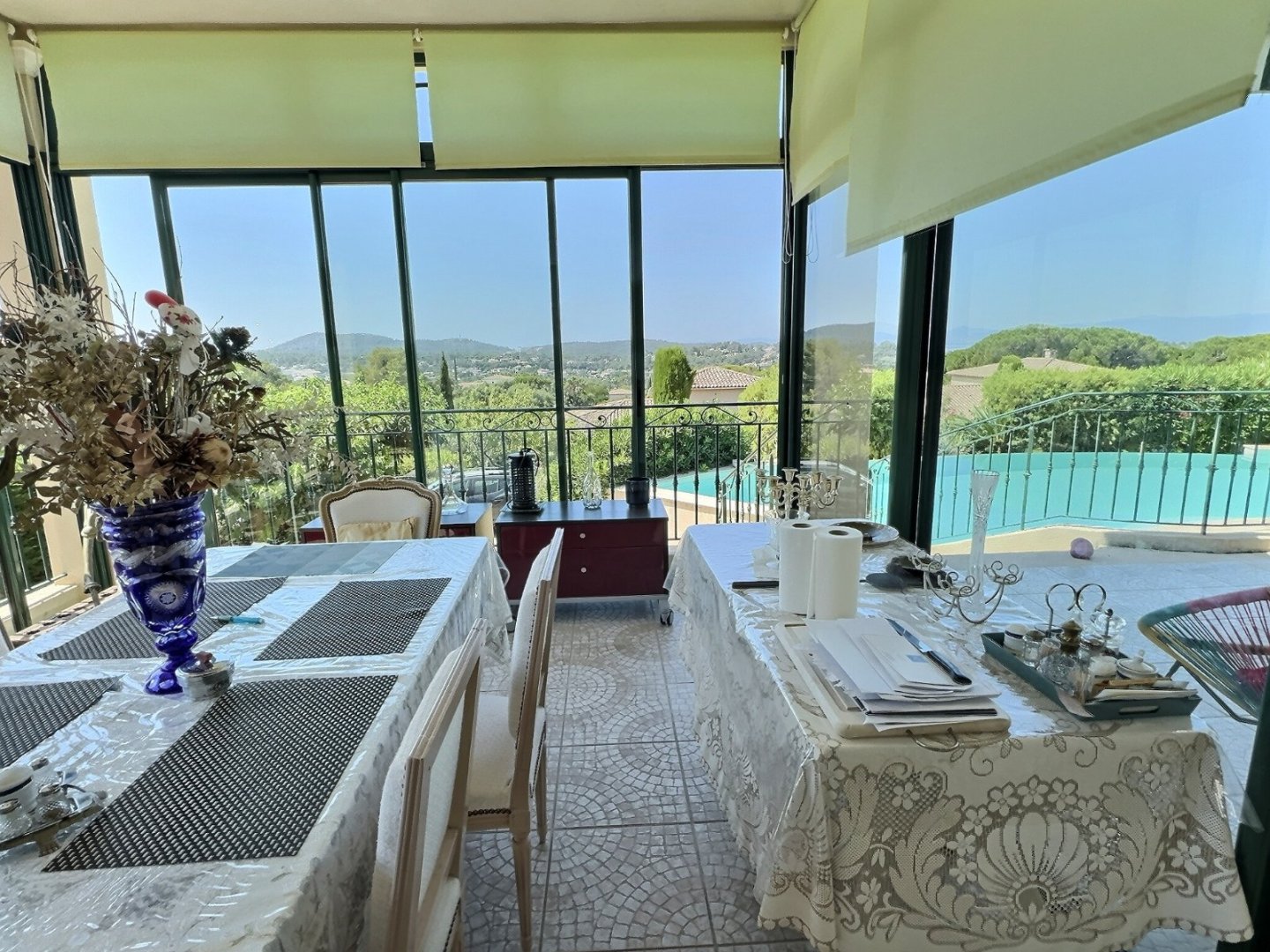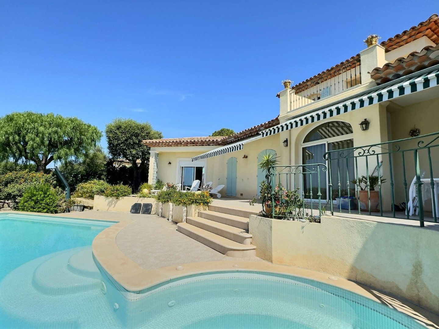 - Dans un domaine calme et recherché sur les hauteurs de SAINT RAPHAEL, magnifique villa offrant une vue panoramique jusqu'à la mer. Elle se compose au rez-de-chaussée : d'un hall d'entrée desservant une cuisine entièrement équipée et une réception de 70 m², 2 chambres dont une suite avec salle de bains et dressing, salle d'eau, véranda. A l'étage : une chambre et salle d'eau avec WC. Sous-sol entièrement équipé, possibilité de stationner 4 voitures, piscine, jacuzzi. Le tout sur un terrain de 1500m².