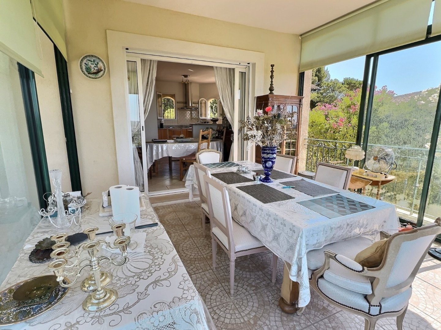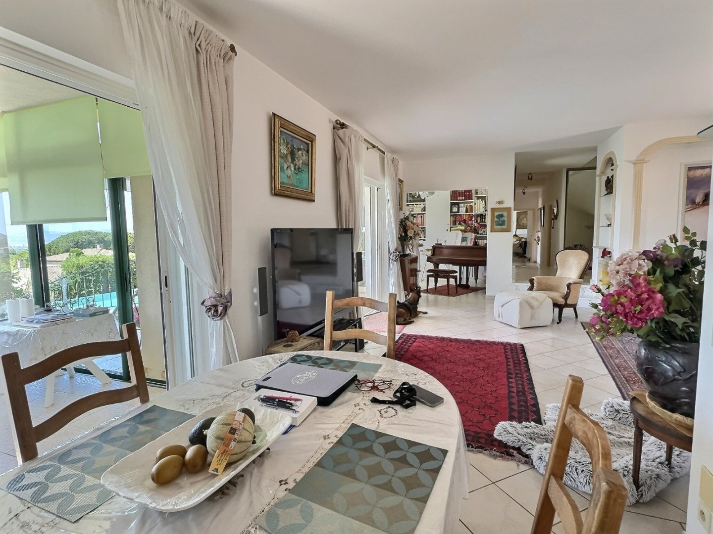 Dans un domaine calme et recherché sur les hauteurs de SAINT RAPHAEL, magnifique villa offrant une vue panoramique jusqu'à la mer. Elle se compose au rez-de-chaussée : d'un hall d'entrée desservant une cuisine entièrement équipée et une réception de 70 m², 2 chambres dont une suite avec salle de bains et dressing, salle d'eau, véranda. A l'étage : une chambre et salle d'eau avec WC. Sous-sol entièrement équipé, possibilité de stationner 4 voitures, piscine, jacuzzi. Le tout sur un terrain de 1500m².